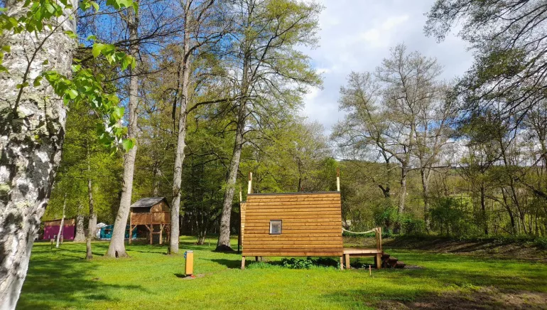Le domaine de l'Eau Mère, entièrement réinventé par Sophie et Vincent en 2024, propose 7 hébergements avec sanitaires et chauffage (34 couchages), 11 cabanes insolites (34 couchages), 1 marabout groupe (14 couchages) et 49 emplacements tentes, van ou camping car... tous avec électricité.